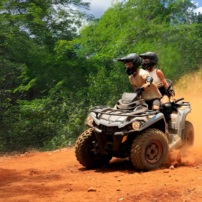 Drive one of the most powerful ATVs in Cancun for a wild ride down jungle trails, full speed ahead around curves and over roots and rocks. The fleet of Can-Am 450 Outlander Max ATVs are waiting to take you on the ride of your life. Nature is up next! Ater all that fun you´ll be ready to cool down and enjoy a swim snorkeling in an amazing cenote discovering the mystical wonders of the Mayan world and as a perfect finish delight yourself by savoring real Mexican cuisine.